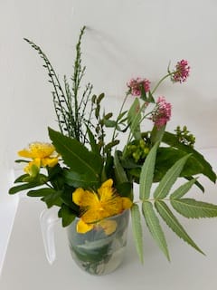 - Get outside - it all starts with a gentle, mindful walk, ideally on your own. No phone, no dogs. Do take some flower scissors or secateurs and maybe a trug or basket. Walk slowly. Slow right down and look around. And I mean really look. Stop and stare at all the details of the trees, bushes, branches, moss, leaves, weeds, flowers, petals, buds, seed pods. You will be amazed at what you will spot.