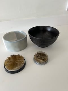 Ikebana bowls and two sizes of kenzan