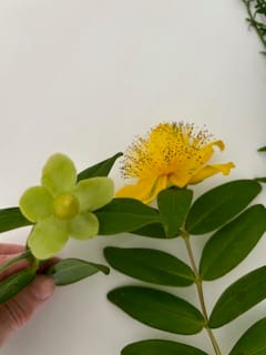 - Stem selection - spend some quiet time closely examining your snippings. Look at which way they each bend. Identify ones with unusual shapes you want to draw attention to or twigs with twists that draw the eye. Some flowers may be perfect, others may have too many leaves that you need to snip off. Choose three of the same flower or plant to use as the focus of your arrangement and snip these to different lengths. Make each snip while holding the stem underwater.